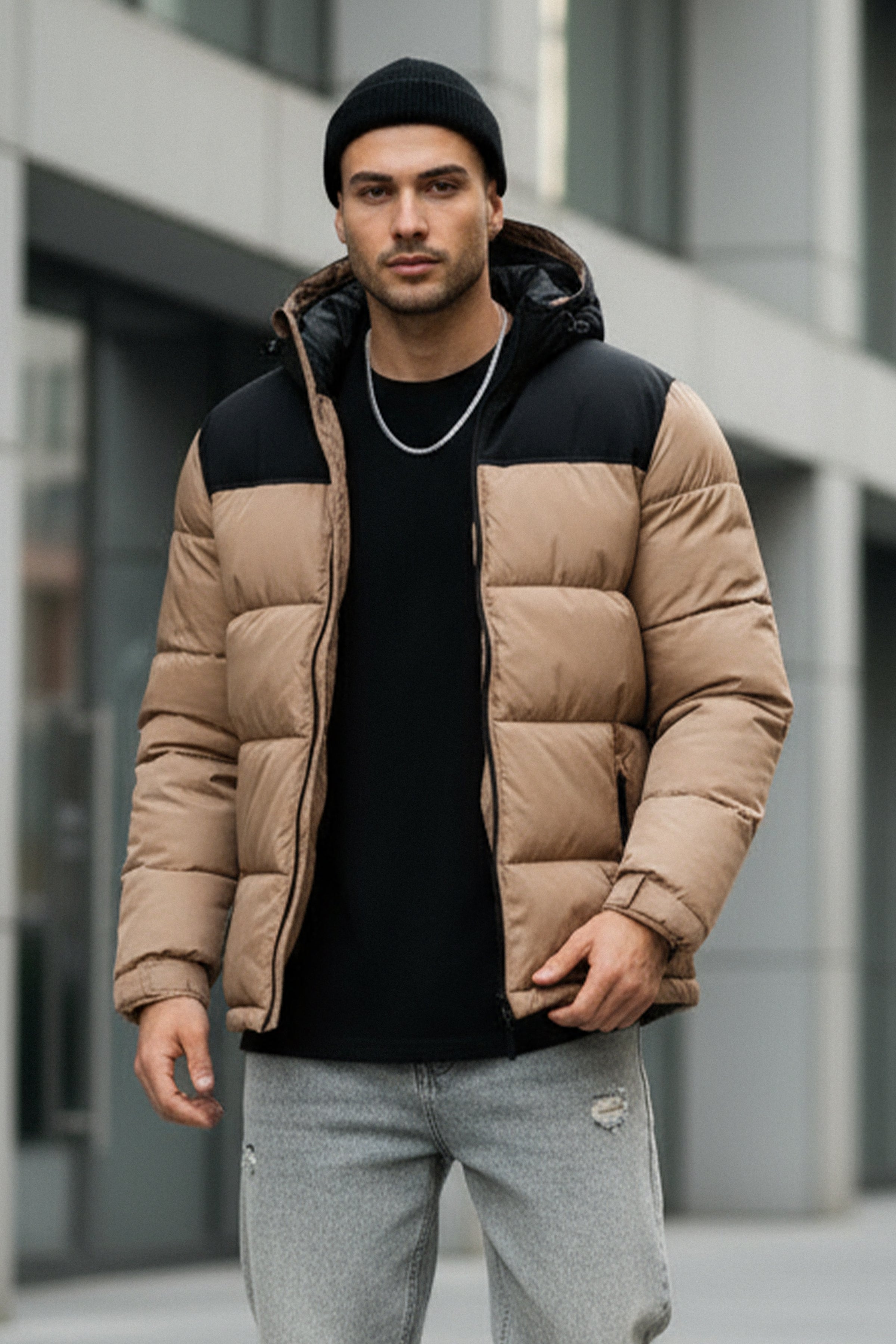 🧥 Geacă Puffer Cappucino & Negru – Căldură, Stil și Confort în Fiecare Zi!